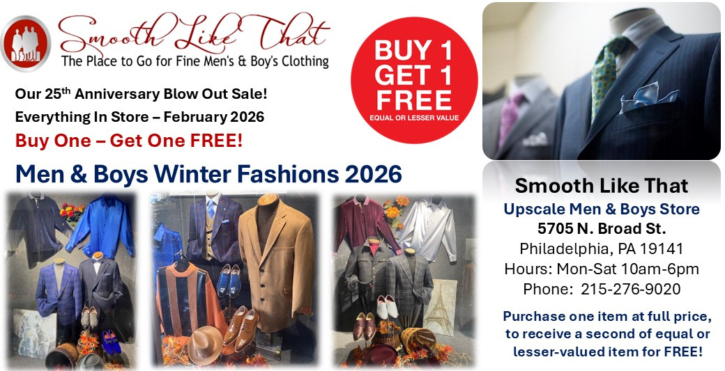 Smooth Like That is Philadelphia’s upscale Men’s & Boys clothing store with a large selection of everything you need for any occasion. Expect the best year-round!